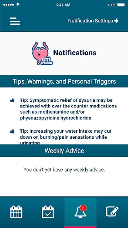 UTI Tracker helps patients take control of their healthcare by cataloging daily urinary tract symptoms and behavioral patterns, and offers personalized tips for UTI prevention.