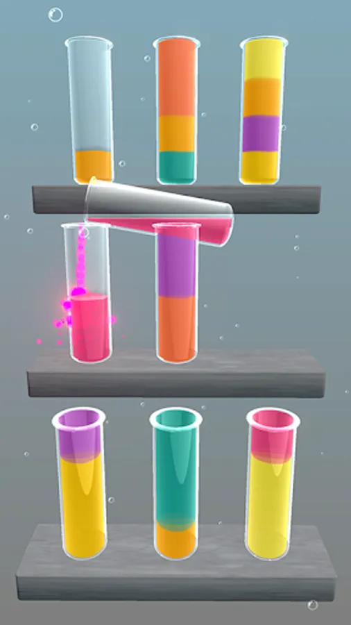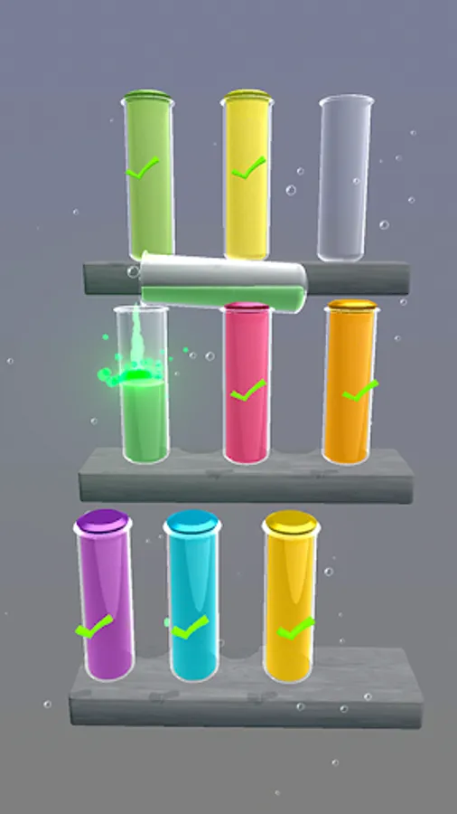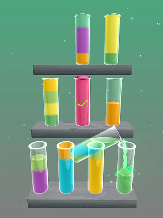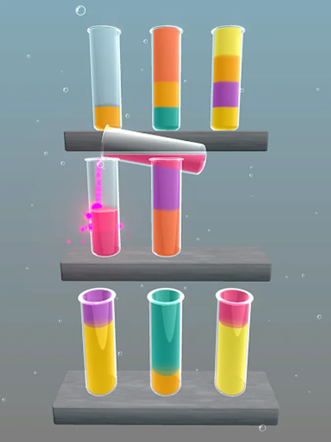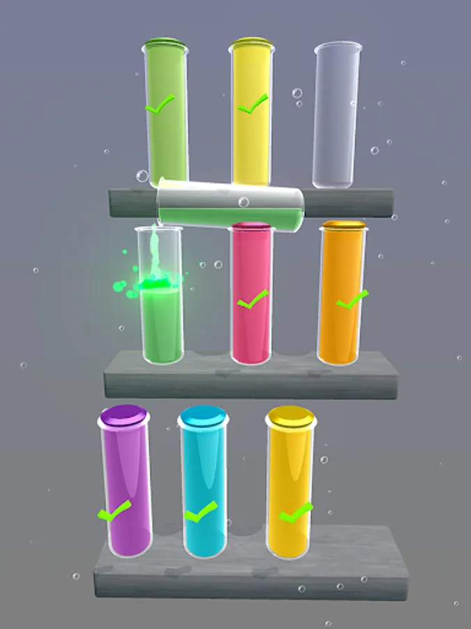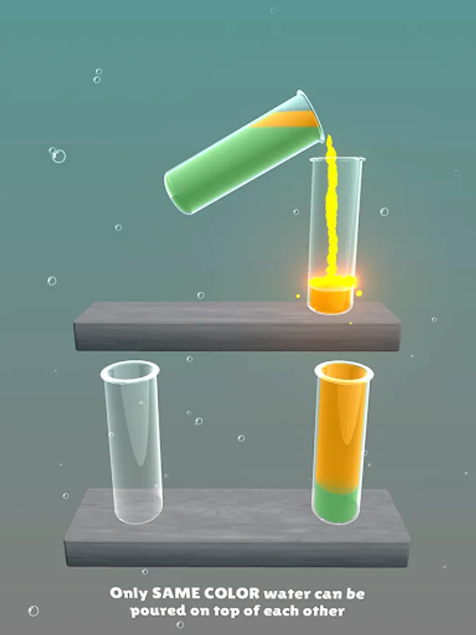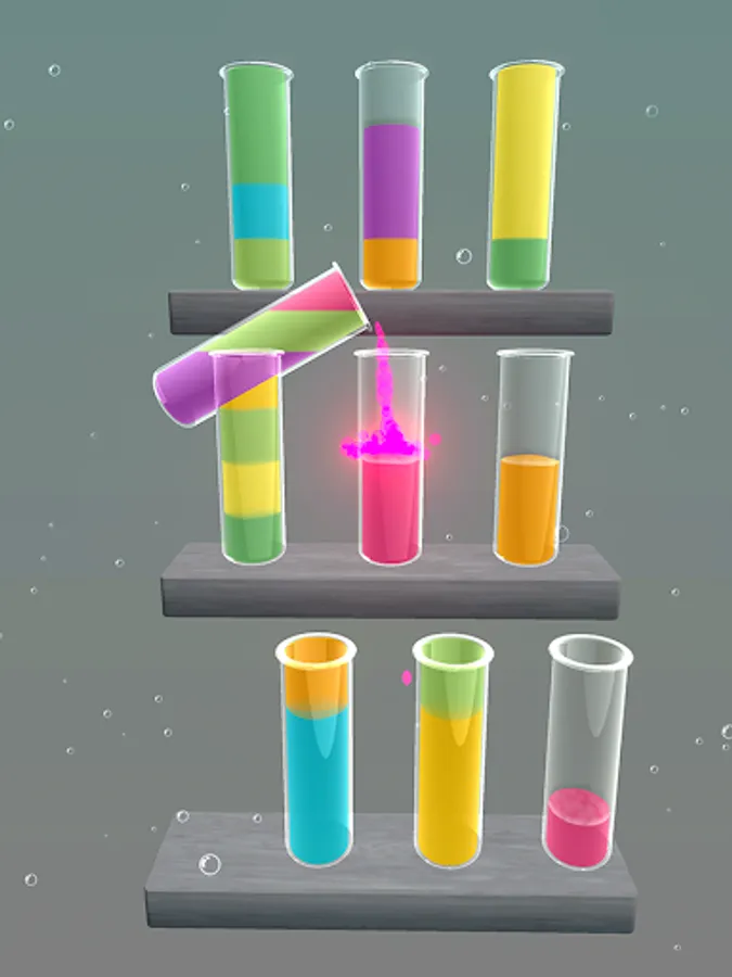 Fizzy Fill Water Sort is a smart and colorful puzzle game that challenges your brain. Sort colorful liquids in flasks by color until each flask is filled with only one color of liquid. The game has a minimalistic design that will immerse you in the process. There are no time limits or tries, so you can play as long as you want. Fizzy Fill Water Sort is a great way to relax and exercise your brain with its smart sorting and colorful liquid puzzles. Download now and enjoy this addictive water sort puzzle game!