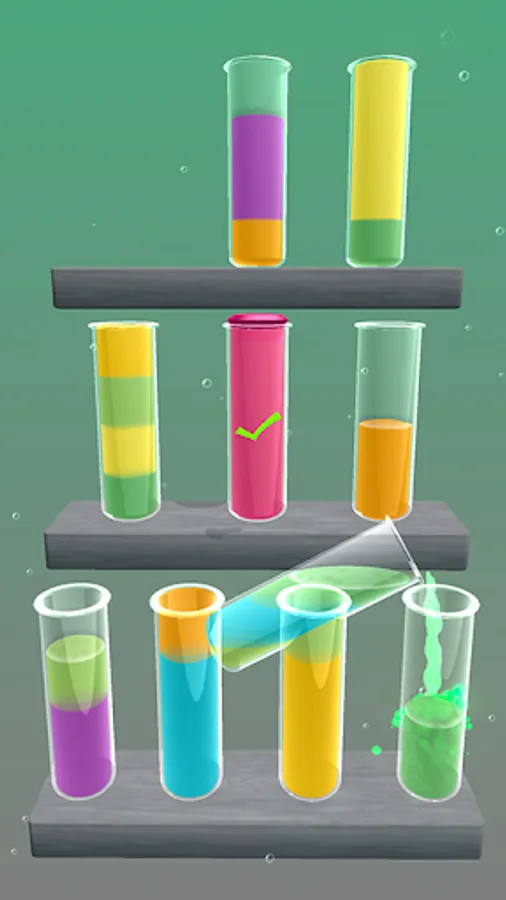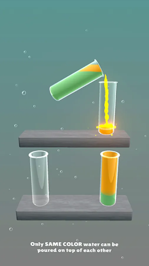 Tap on flask with water. Then Tap on the next flask that has the same color water on top in which you want to pour the water. To win, sort all flasks so that each flask has the same color of water.