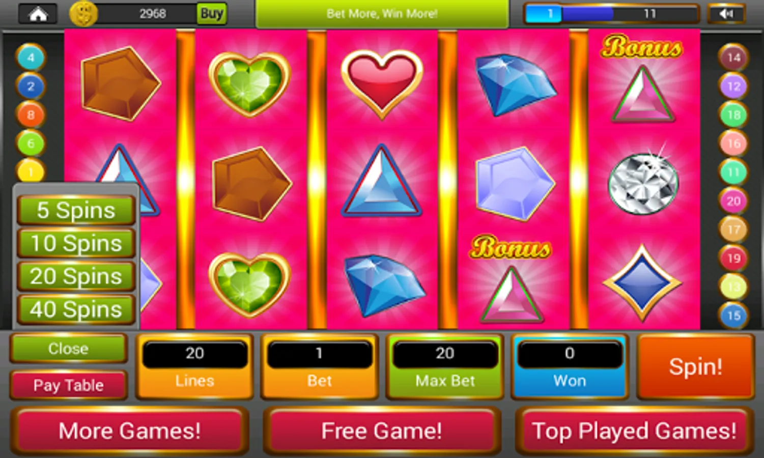 The real thrill of winning Gems Slots mystic and number of treasures! Have a lot of fun with this unique best classic casino slots machine just like in Vegas! Download awesome slot game and play for FREE! Best like real casino slot machine for the users and feel like Las Vegas Casino.