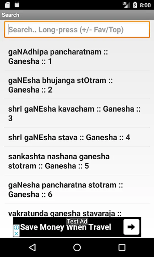 * Search option available, "long press" during search to move to the top of the list (Fav)