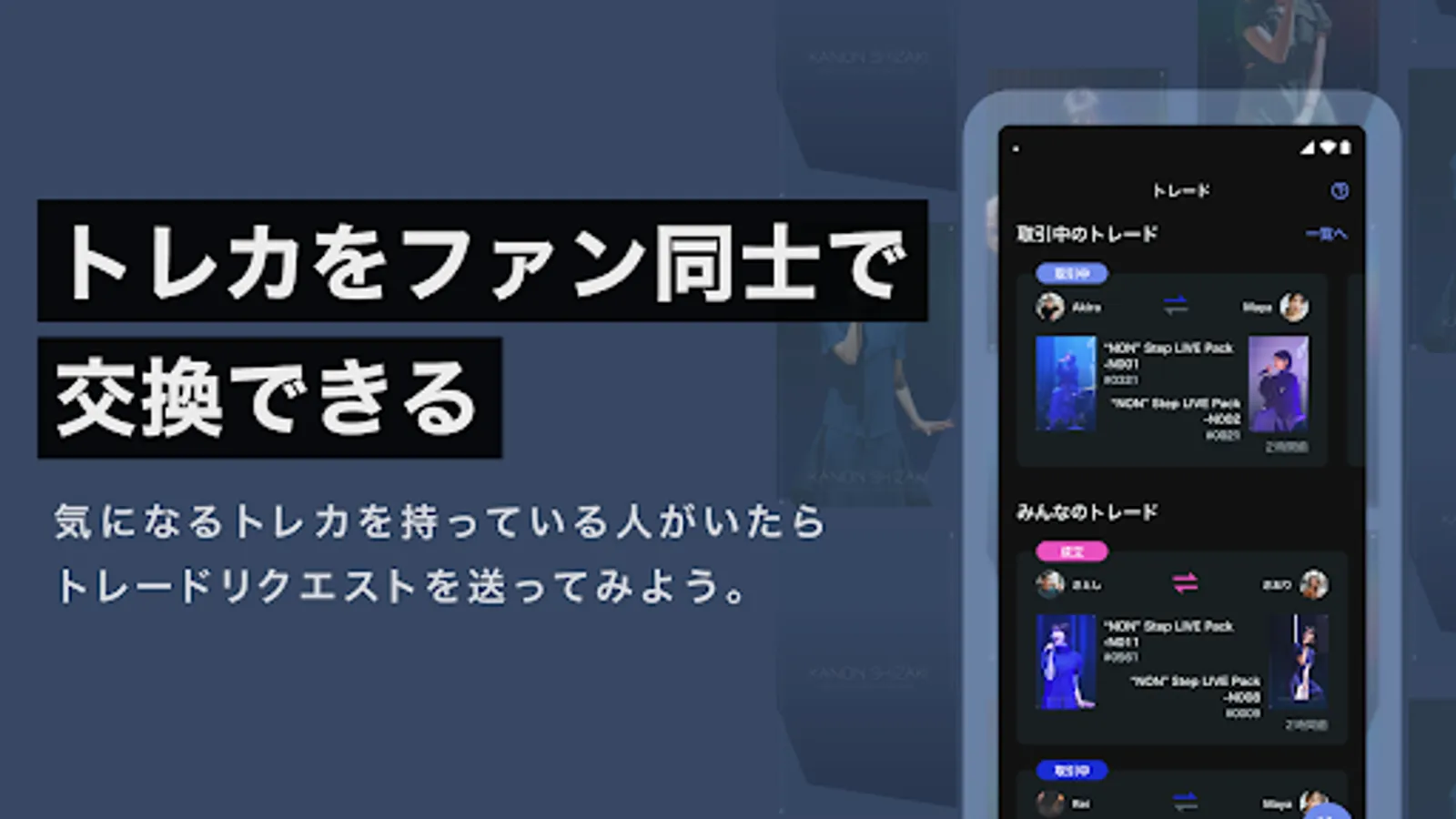 Digital trading cards are digital trading cards that can be collected and traded within the app.