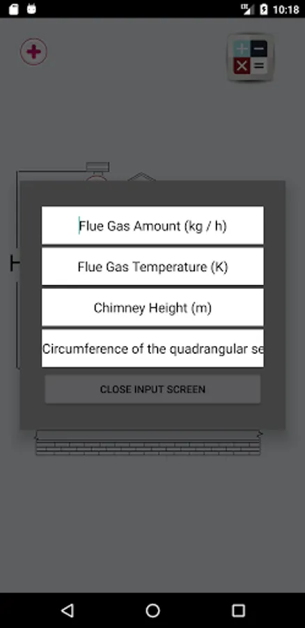 The Applicaiton allows the calculation of the chimney diameter. Different empirical equations are used as a calculation method.