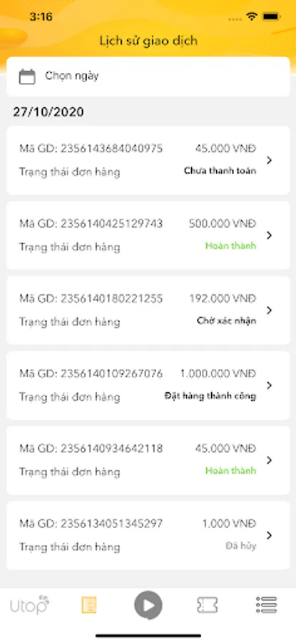 - Earn Utop points (1 Utop point equals 1 thousand VND) for each successful transaction.