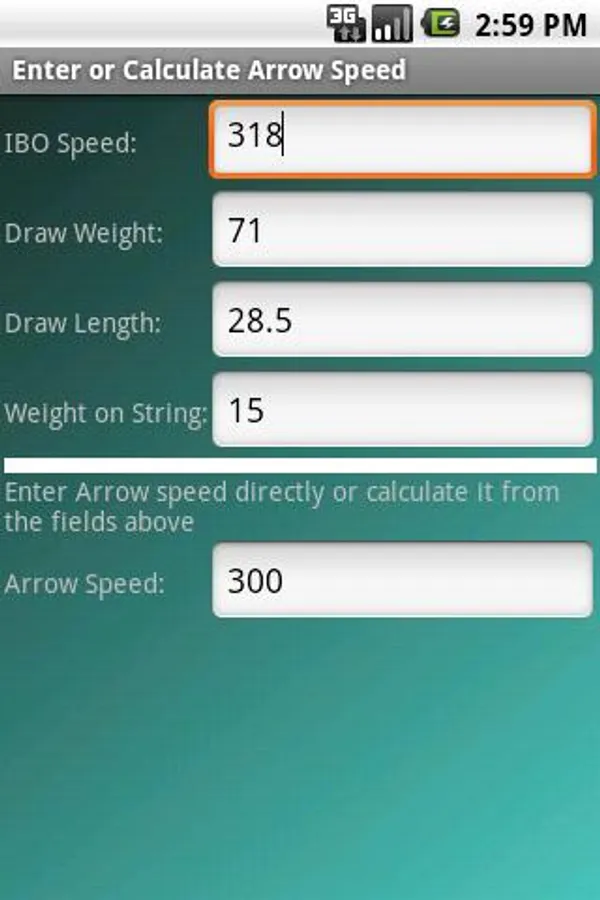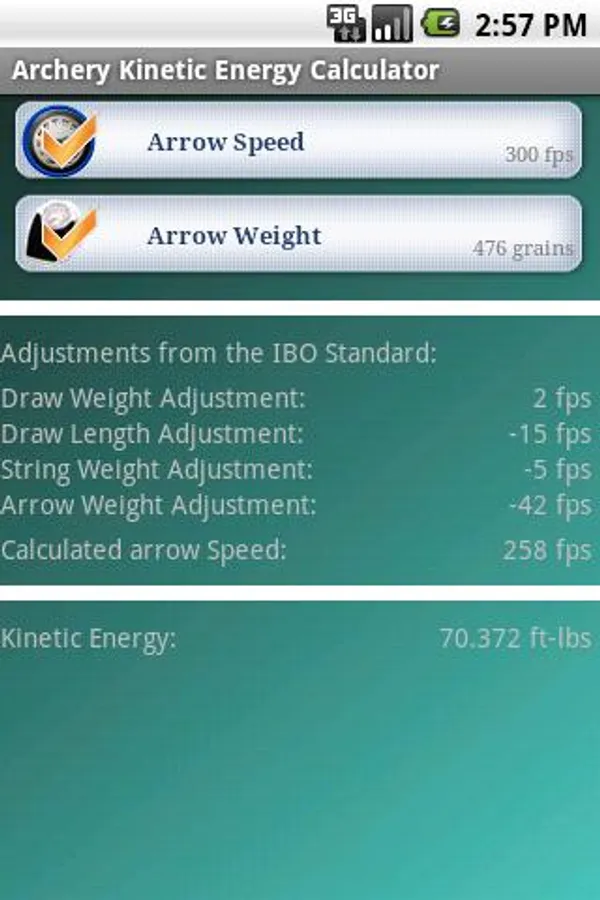 This app will calculate the kinetic energy of your arrow. It can even calculate the estimated speed of your arrow if it is unknown.