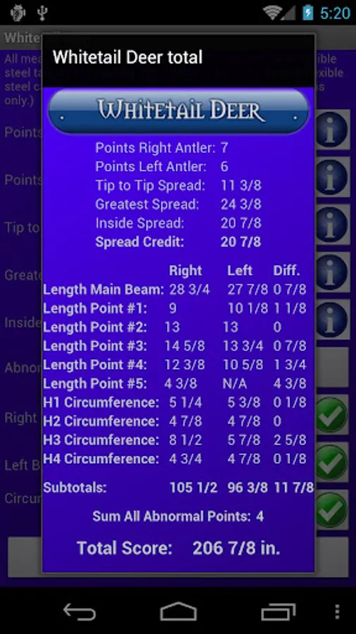 Currently the application allows scoring of Whitetail Deer (typical), Bear, and Bison. Many more species will be added in the near future.