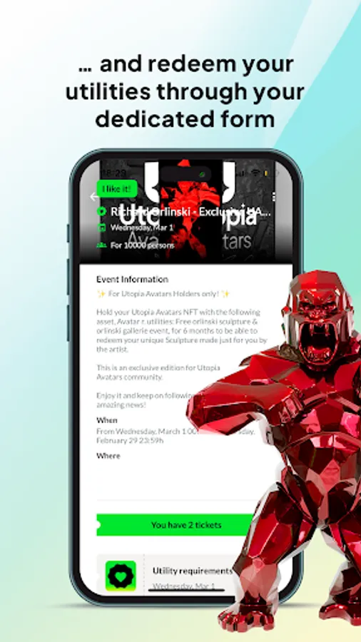 Always taking care of you, UTicketing allows you to unlock the full potential of your ticket or your NFT by enabling event organizers and NFT collections to give full and safe access to events and utilities through the app.