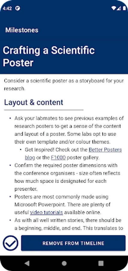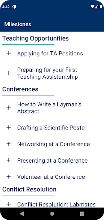 Milestones: Student-crafted, blog-style posts with relevant information and links to help you navigate both academic and personal challenges. Create your own personalized checklist of milestones to follow along with your degree timeline.