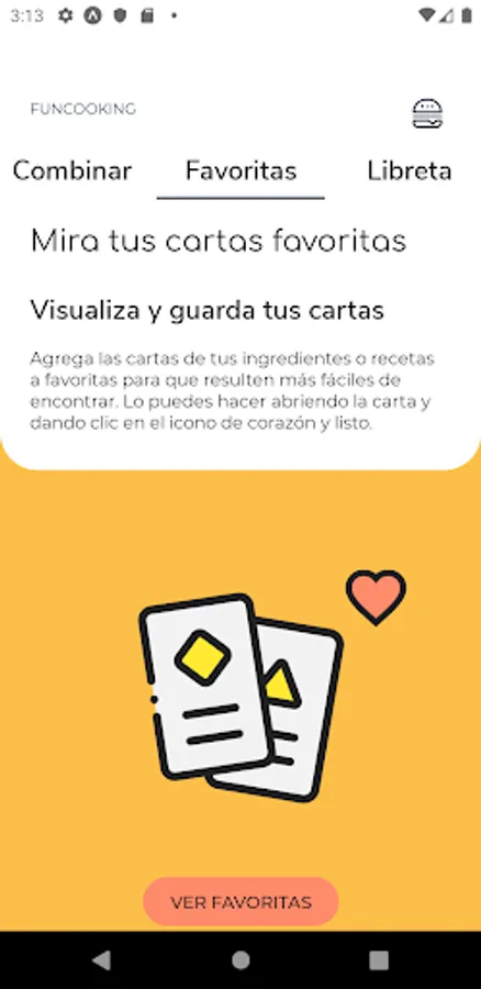 Add the cards of your favorite ingredients or recipes to make them easier to find. You can do it by opening the letter and clicking on the heart icon and that's it.