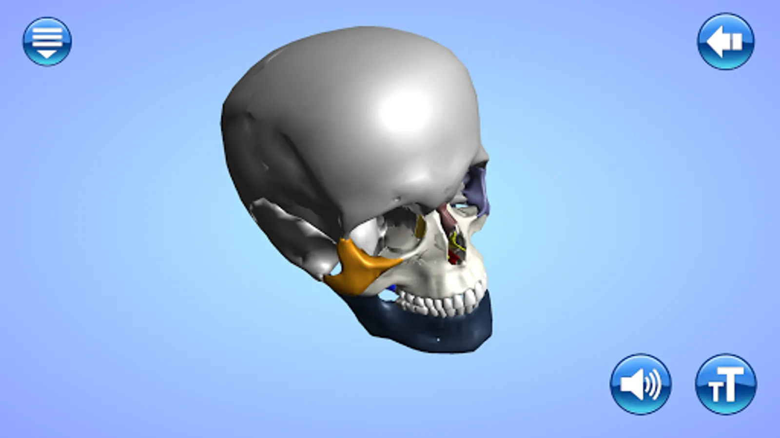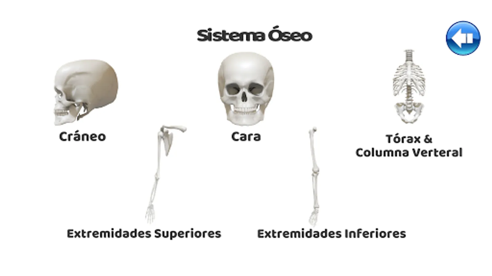 In the present application different 3D objects both the skeletal system, planes and anatomical regions are displayed. Where you can view those very inner parts that are not easily visualized in addition to an explanation in audio and text.