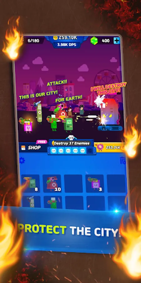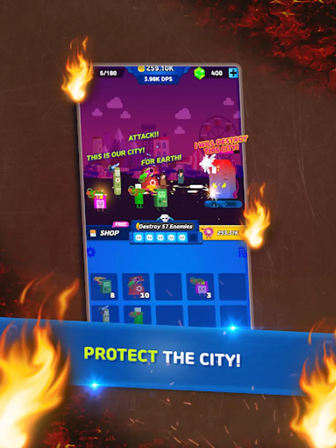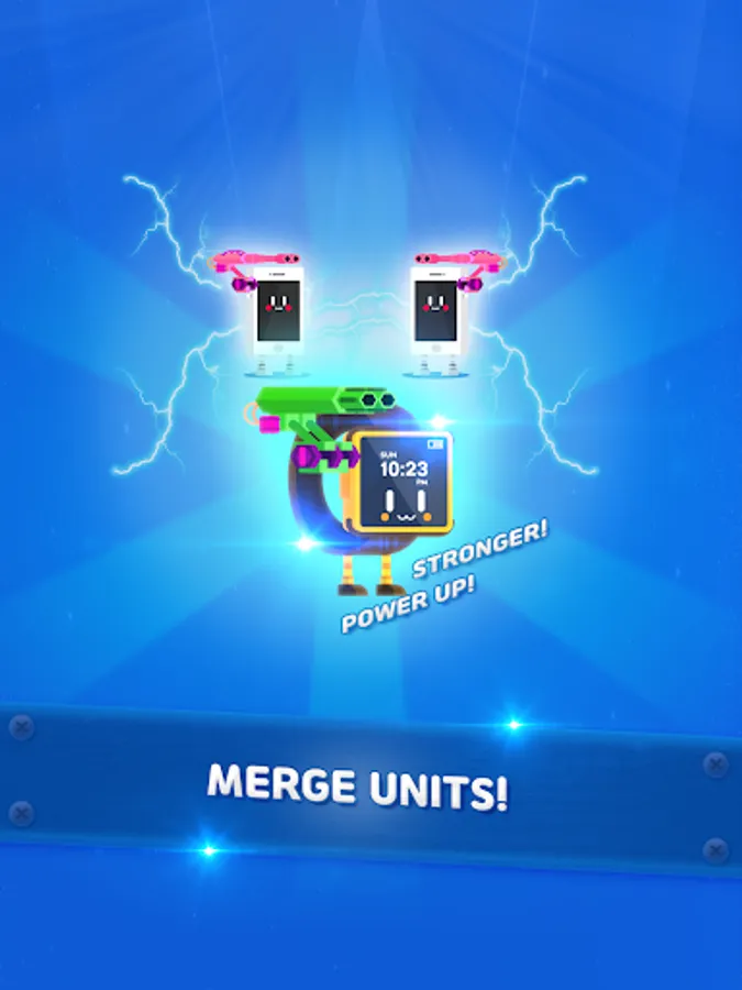 Evil electronics army are invading Electro City! Can you merge and build your Electronic friends to protect it fast enough?