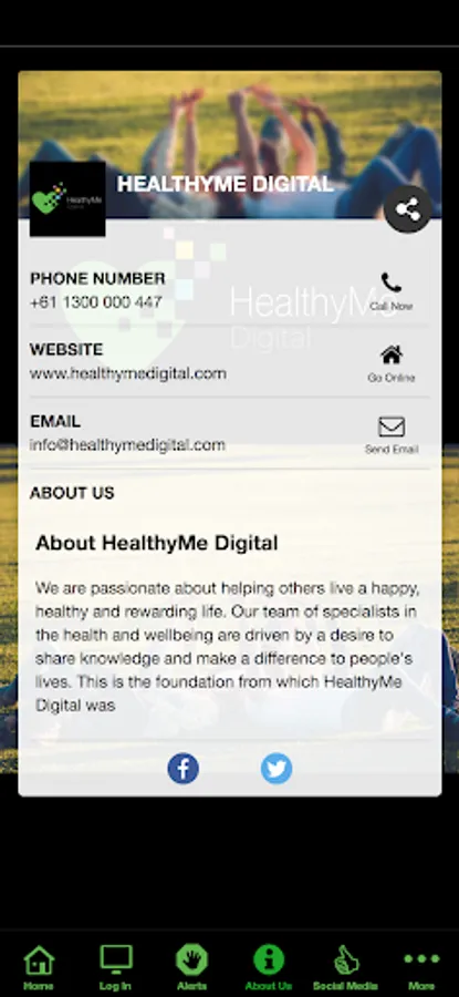 HealthyMe Digital Welcome to HealthyMe Digital where you will find bite sized information on all things relating to Health and Wellbeing. Through our interactive online programs you will discover information on ways to support you to live a happy and well-rounded life. Whether you are an individual looking for personal growth or a corporate entity seeking a customisable wellbeing program for your workforce, HealthyMe is for you.