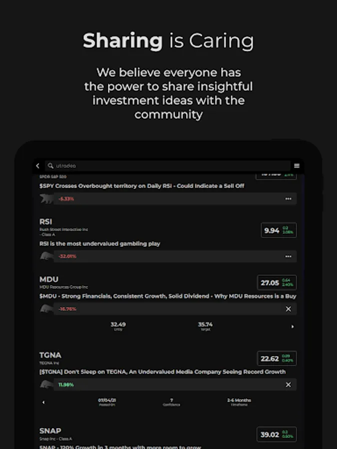 Utradea is the intuitve app for crypto and stock investing. With the stock market tools & crypto analytics to investment and trade ideas, Utradea can help take your investing to new heights. Download our app to access all of our exciting features including fundamental & technical analysis tools, investment ideas, charts, live ticker updates, real-time news and so much more.