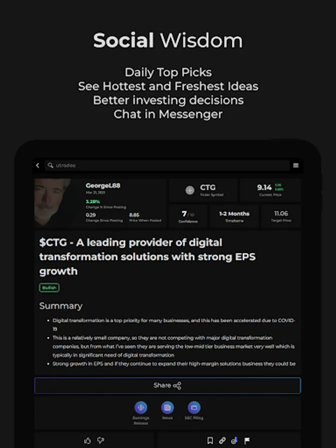 • Find, Follow and Chat with Amazing Traders for new stock and crypto insights & ideas