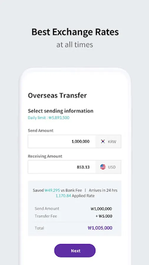 - Eliminating all costs other than remittance charge of ₩ 5,000
