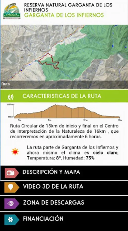 It included within the Network of Protected Natural Areas of Extremadura, is the Natural Reserve of the Gorge of Hell