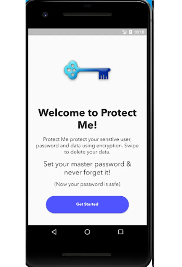 Protect me is android application used to protect your important data like your facebook,gmail,twitter and more user name and password. We encrypt password so noone can get your data without your master password. Now no need to remember your whole all username and password just remember signal master password and your all username and password is safe. Using this application is safe noone can access your data including developer. Using protectme application never forget your first master password