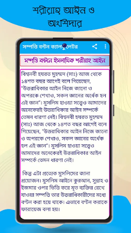 Know your inheritance to use our uttaradhikar apps and you will find all muslim uttaradhikar law. This uttaradhikari calculator includes all Muslim shariah laws to distribute the property. In the future, we will add Hindu uttaradhikar adhiniyam in this uttaradhikar calculator app. This uttaradhikar software distributes all the inheritance property among all heirs. So, sompotti etiquette calculator will be very useful in daily life.