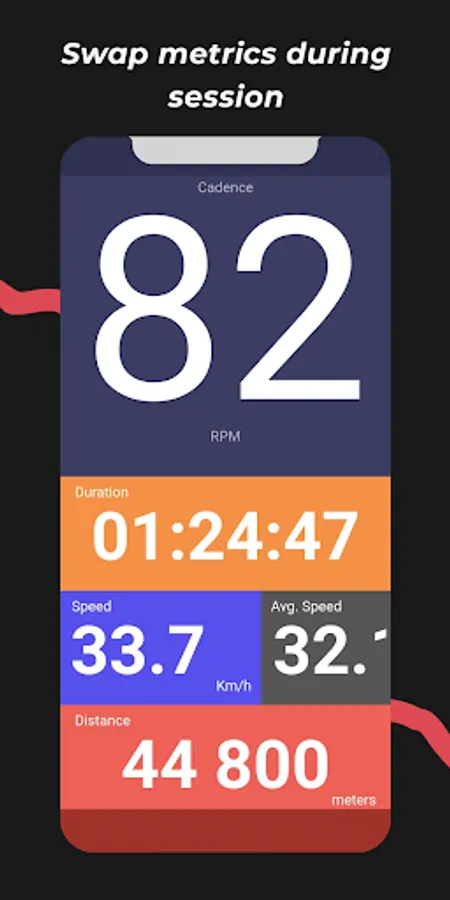 Choose what you want to see during the session from the list of available metrics in the system: duration, speed, average speed, distance, cadence, heart rate, or distance per revolution.