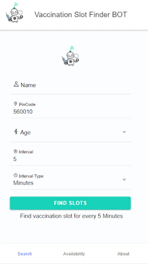2. Click of the 'Find Slots' button, app will search of the slots for the next 20 days and keep checking on selected time interval and time type.