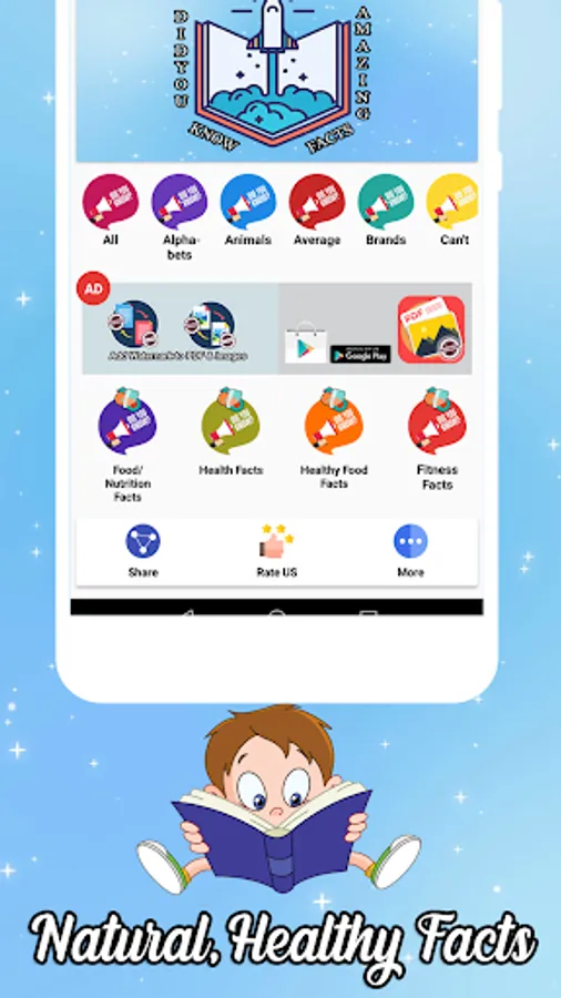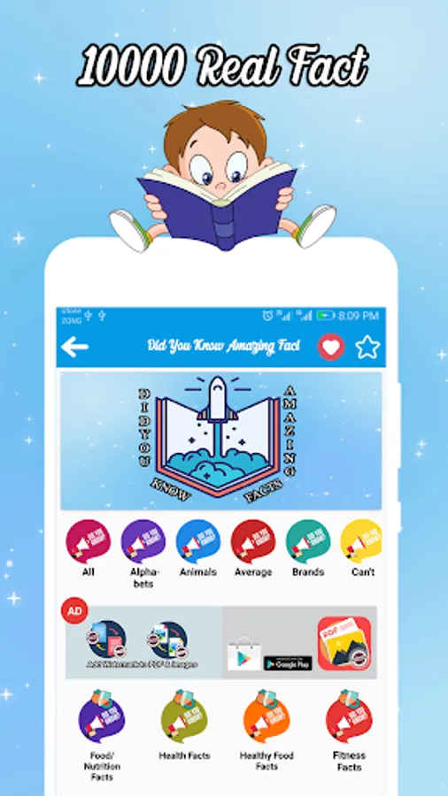 This Amazing Fact App helps you to understand better things around you are beautiful thing, interesting facts and amazing facts that you may not know before it .You should try our Did you know the fact app , if you like learning something new every day and share amazing new facts with your friends.