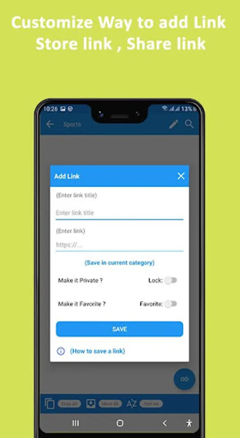 Simply save bookmarks of any link or text to the web pages and it will either store it immediately or ask you to organize and tag the text or link, depending on how you defined it. Some time you use some web page but latter you forgot them after some time if you want to again use them, So this problem is solve in this app. Simply save the link and without wasting time by one click you can reach the desire sites. You can also copy links anywhere on your phone and it will automatically ask you to save the link or text and organize it in the category you want