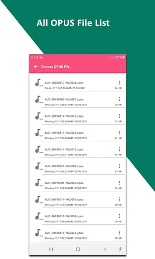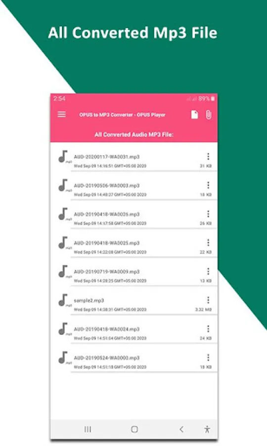 opus to mp3 audio converter app let you convert all opus file to mp3 audio file easily . opus is file of or social app WtsApp voice message , to play or convert opus audio voice this app is done your work very smoothly and easily . the app show you all converted mp3 file and play , share , delete easily all mp3 audio . you can also play opus audio file with this nice opus media player .