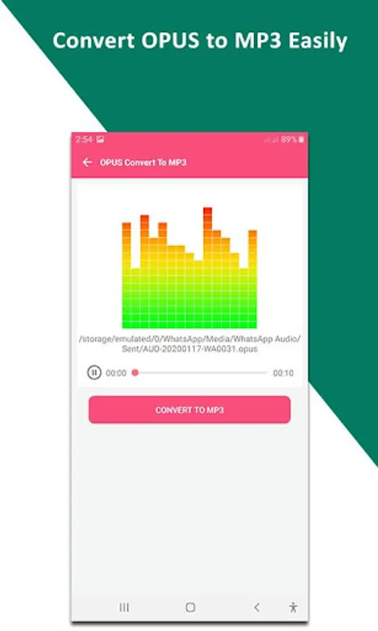 Opus to mp3 converter take an audio file from WhatsApp and play it with opus media player for listening. You can also share this converted this mp3 file to other social media. After using the opus to mp3 conversion you can easily save this mp3 file and using it latterly with any mp3 media player.