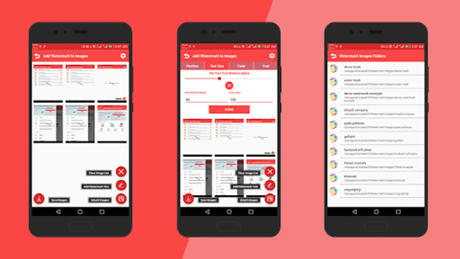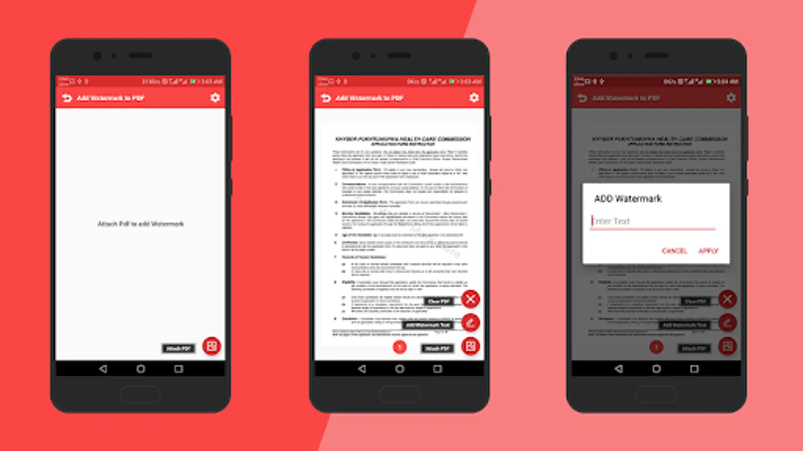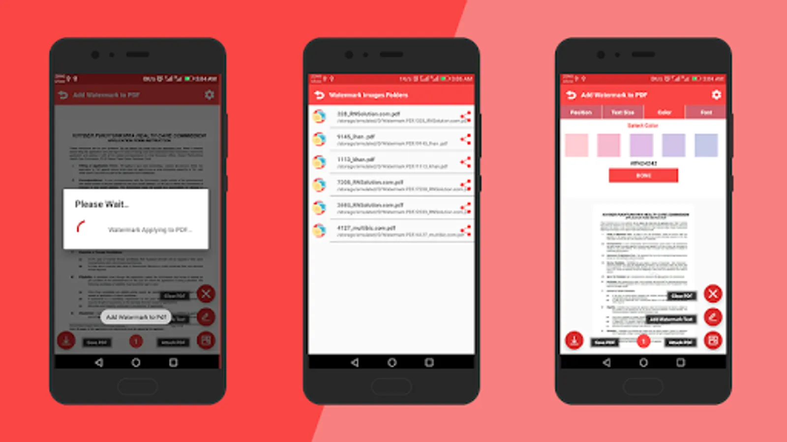 This app provide 2 option to add watermark , one you can add watermark to photo and the second you can add watermark to pdf file very easily .Add Watermark Text on Photos . Write texts to your editing picture using different fonts color or different text size with different text position .Watermark on Photo an PDF File . The best part of this app is to provide quickly and easiest way to create watermark and apply watermark on your photographs and pdf file . A watermark is a text or logo that has been differentiated the images.