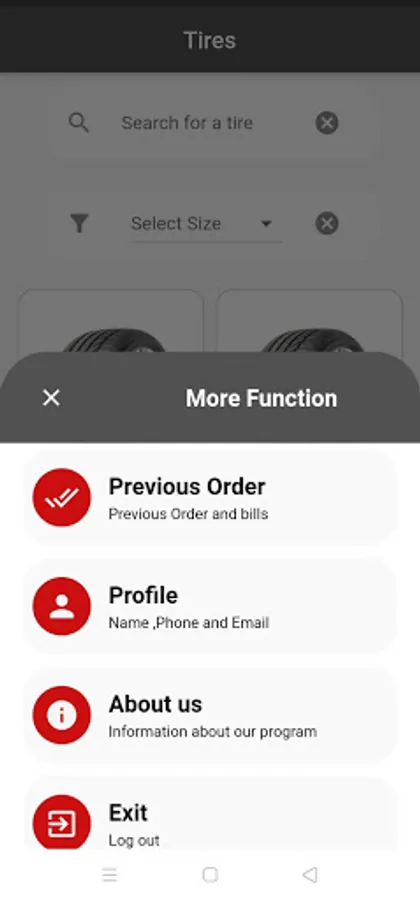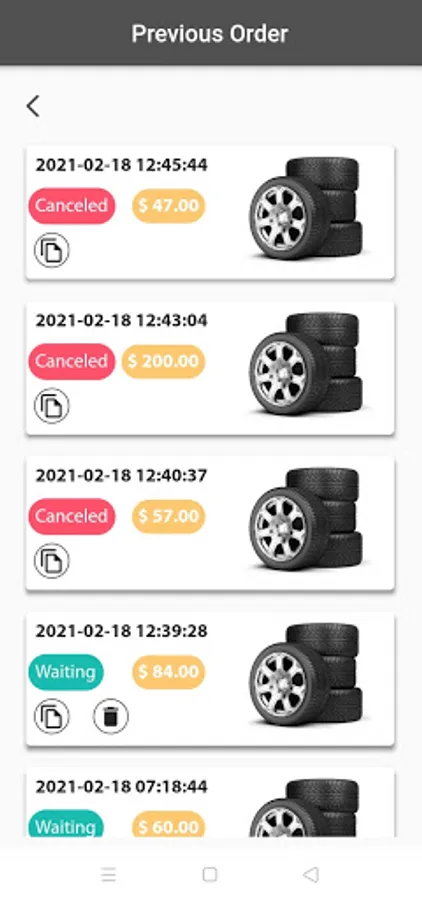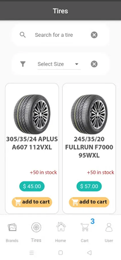 Customize mobile application to create orders and track it showing the brand and sizes of the tires updated prices