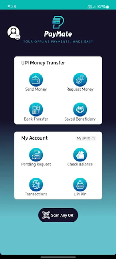 You can use any bank account linked to your phone number. Payment is sent and received instantly. No Wallet, No adding money. All transactions are processed directly from your bank account. PayMate works only with your SIM card and all transactions are secured with your UPI PIN.