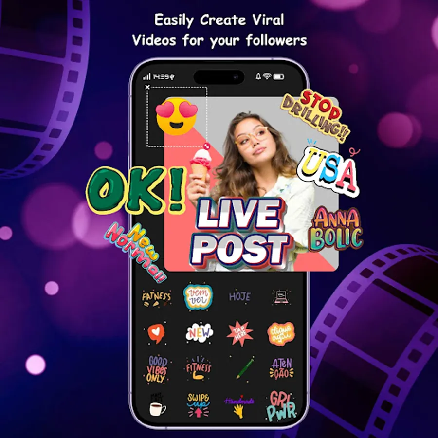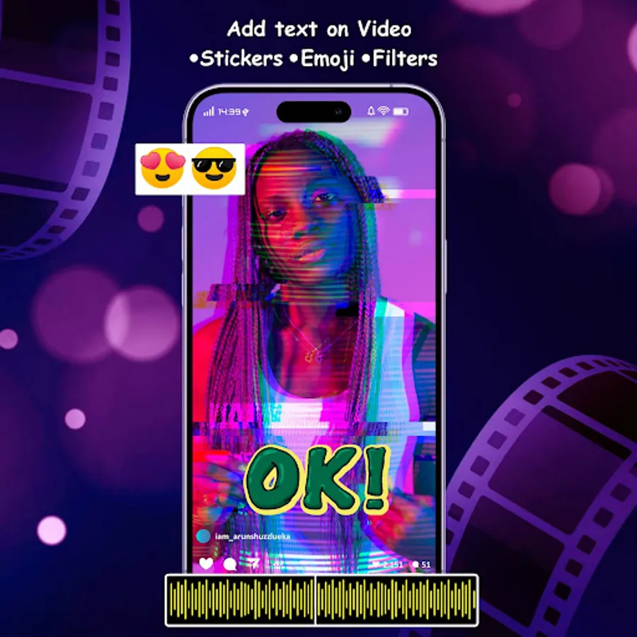 Powerful Reels maker & short video maker app. Create photo slideshow, trim & join video/movie, add music, text, stickers, glitch effect, create short video & make reels. You can edit short videos like a pro.