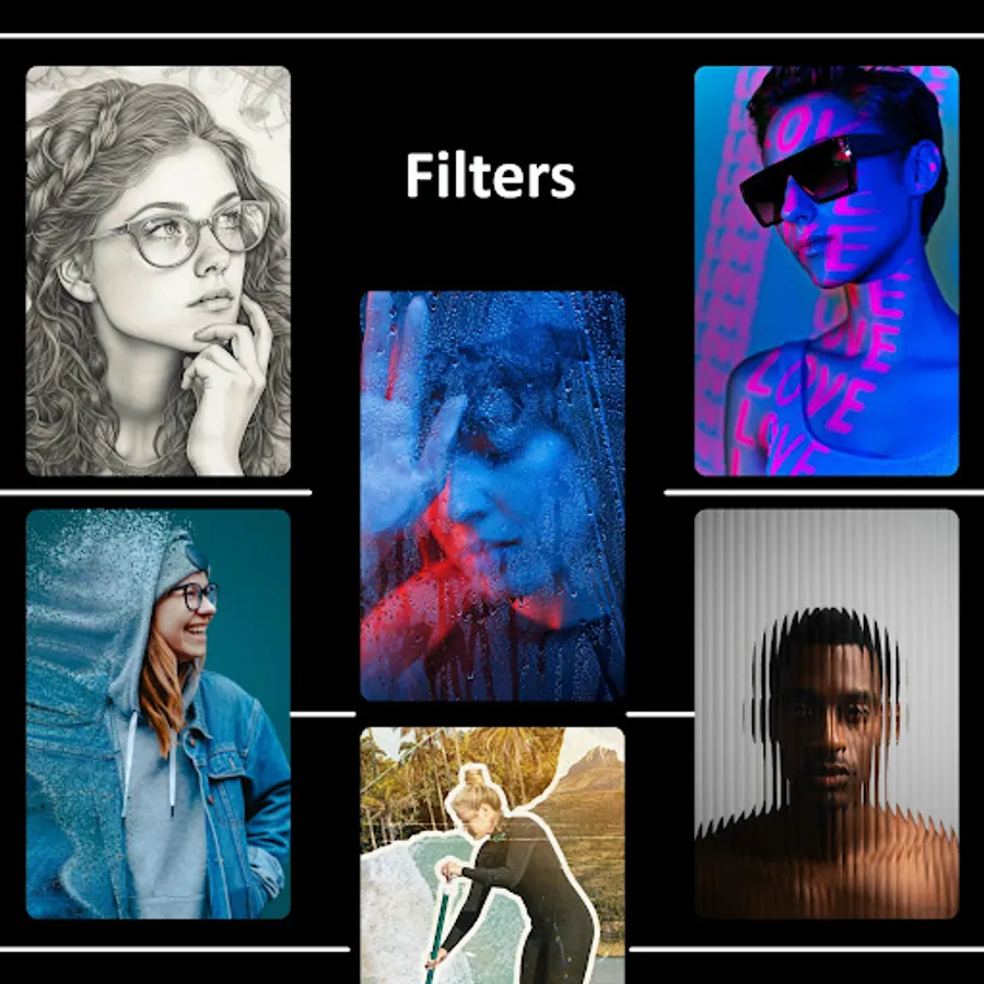 • Add cool effects such as Glitch, black & white. Enjoy hundreds of video filters.