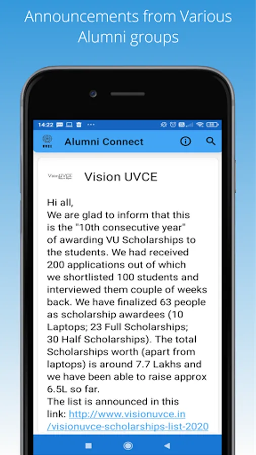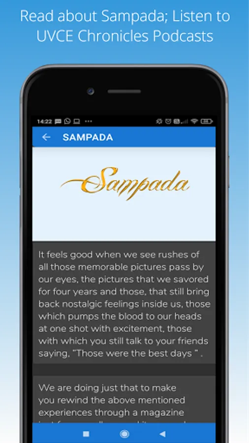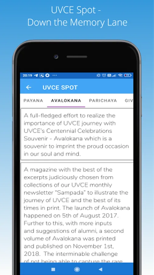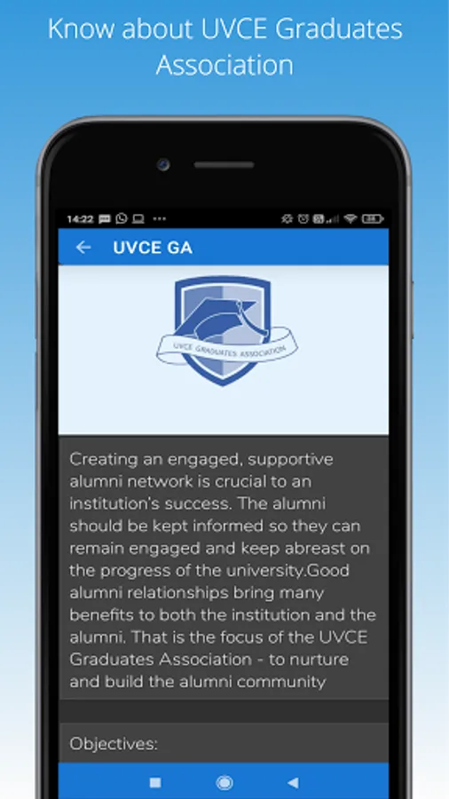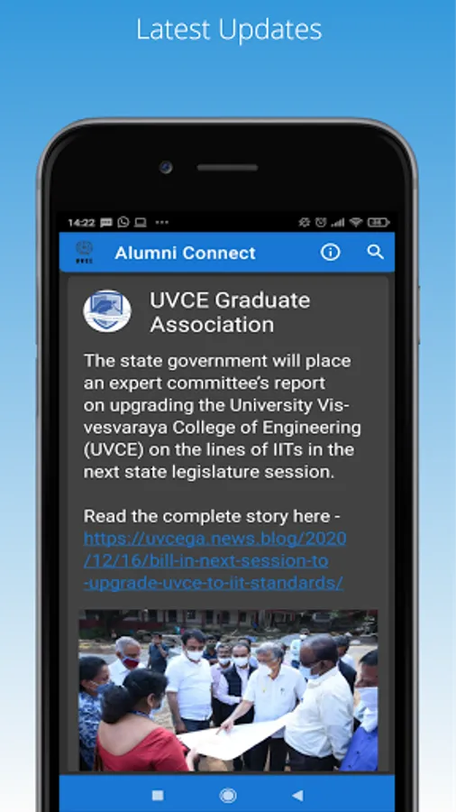 "UVCE Samparka" - one app for the alumni across the globe to know the latest updates and current happenings about University Visvesvaraya College of Engineering. Know about: