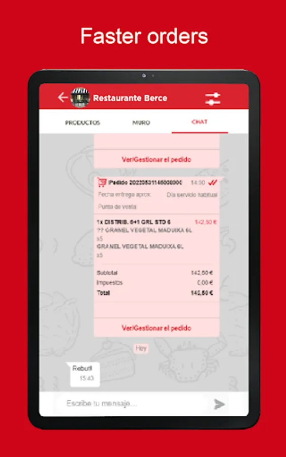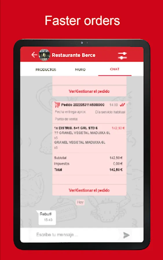 Our catalogue turned into e-commerce designed for you and with your usual commercial conditions. In addition, you can keep direct contact with our sales representatives through the incorporated chat, optimizing order management.