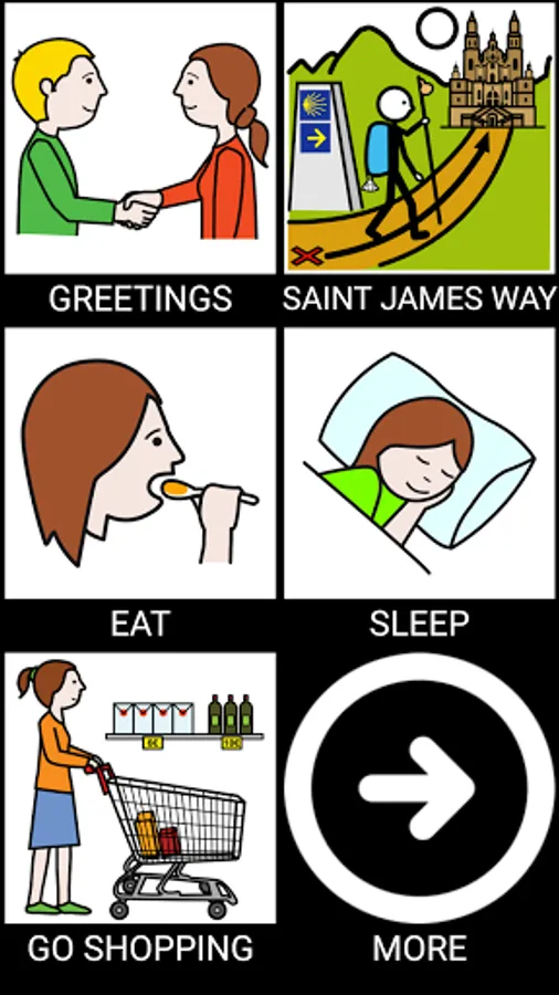 PictoXacobeo is an Android application designed to facilitate the interaction of pilgrims on the Camino de Santiago with communication needs (speech disorders, reading and writing comprehension, language difficulties, etc.). This technological solution of inclusion and social participation allows to select pictograms and create phrases, facilitating communication between pilgrims and the different communication profiles of the Camino (restaurants / cafes, hostels, shops and churches) in the most common languages of the Camino (Spanish, English, French, German, Italian and Portuguese).