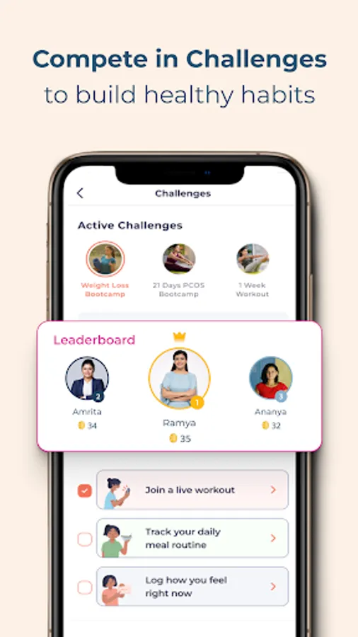 Our daily challenges are designed to help you build the right habits. Compete with other women on daily tasks. Climb up the leaderboard & earn coins as you work on your health goals. With our challenges, you can get better and have fun at the same time!