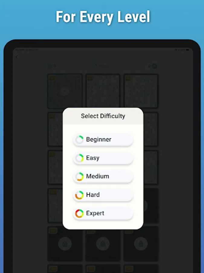 The puzzles are beautifully handcrafted and divided into 5 playing levels from Beginner to Expert.