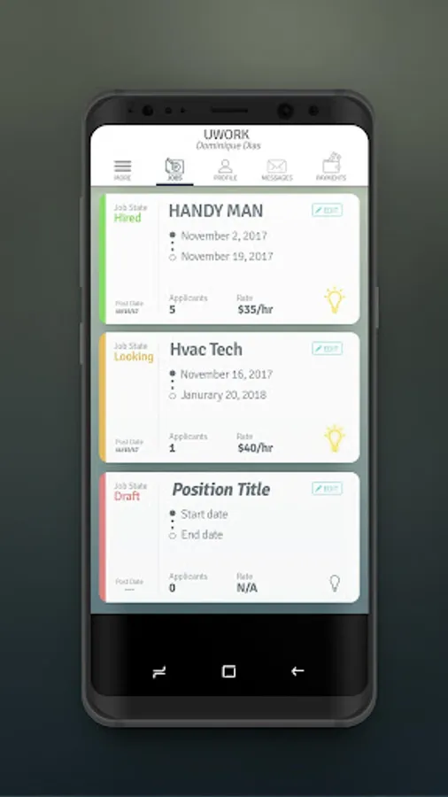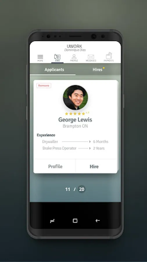 - Find applicants - View an applicant's profile and reviews and hire them on the spot