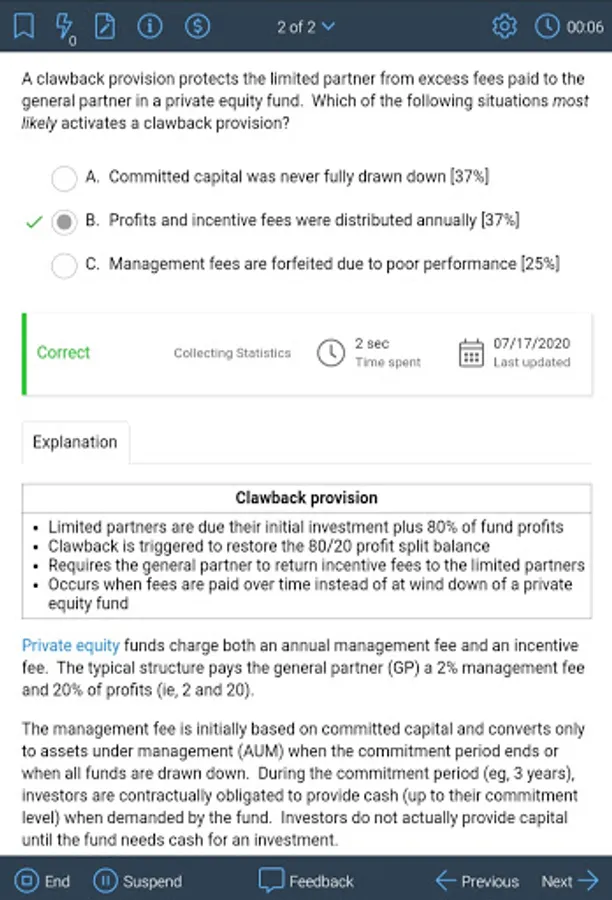 The UWorld CFA Level I Exam learning tool is designed to help you succeed on the CFA Level I Exam. Written by experienced charterholders who are skilled financial academics and industry professionals, our CFA Level I learning tool covers all Level I learning outcome statements (LOS). With relevant and up-to-date CFA concepts, practical illustrations, and in-depth explanations that accommodate all learning styles, you’ll have everything you need to pass the CFA exam.