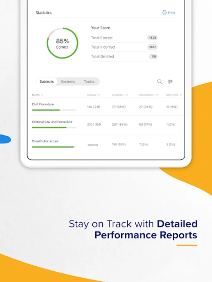 - Create customized practice quizzes by subject, topic, previously incorrect,