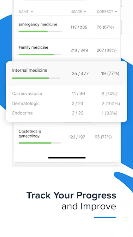 Customizable content and practice tests focus on specific clinical rotations or systems