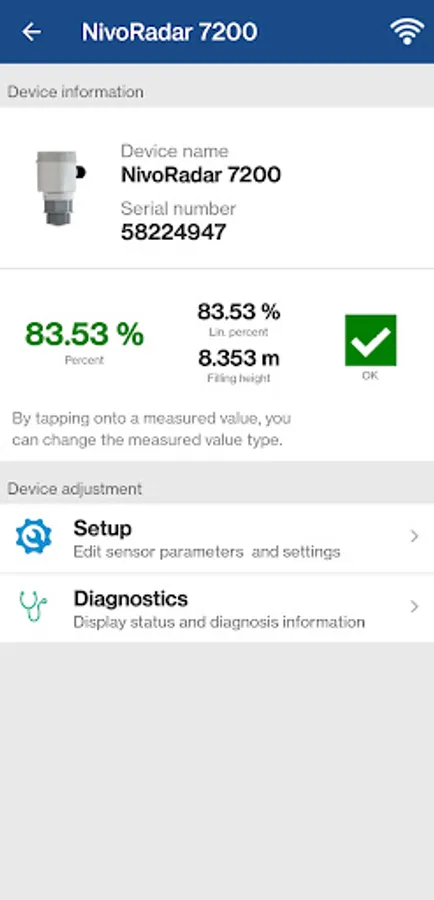 With a mobile device, you have access to all parameters of the sensors and can commission them easily and intuitively. The app can also be used to clearly visualize level and diagnostic data.