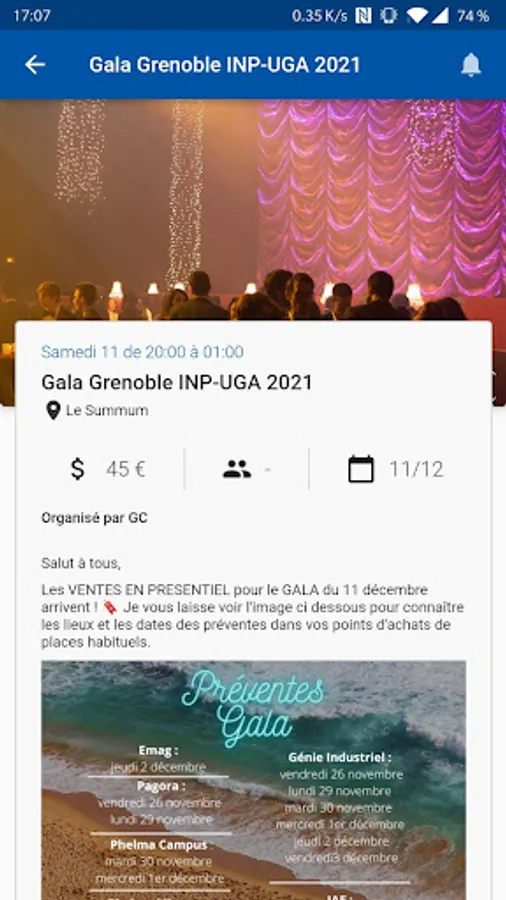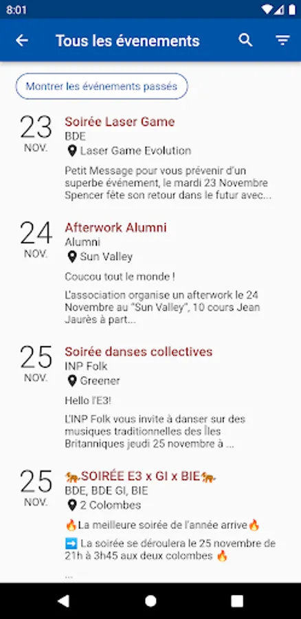 NUwUs allows you to list the events that take place for Ense3 students, whether they are organized by the BDE, the BDA, the BDS, the GC or any other association.