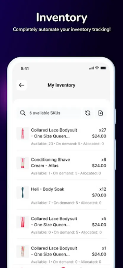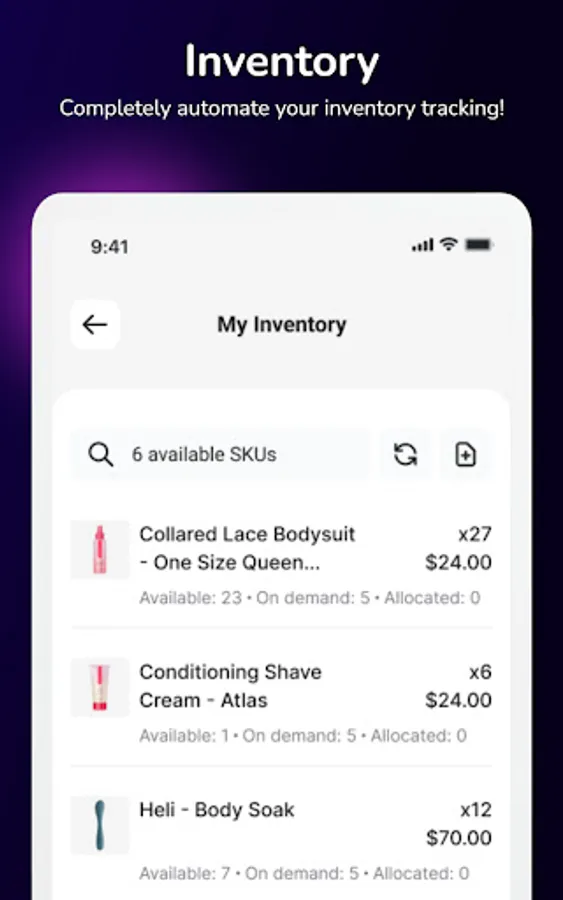 - Inventory tracked in the app - "No more spreadsheets" !!