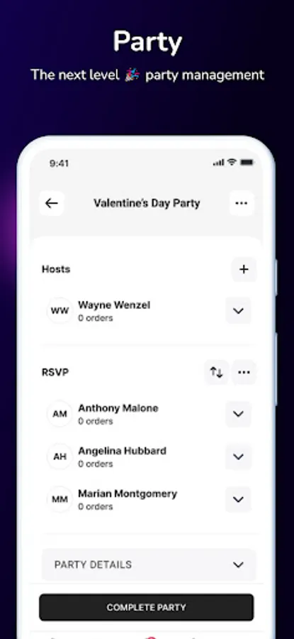 In-person and virtual parties are covered! Live chat, control your virtual attendees carts. All your parties in one place! RSVP management, reminders and so much more!