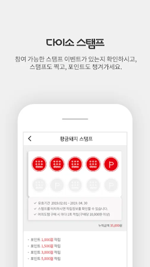 - You can earn 0.1% of the purchase amount of Daiso products, and can be used like cash in units of 50 points.