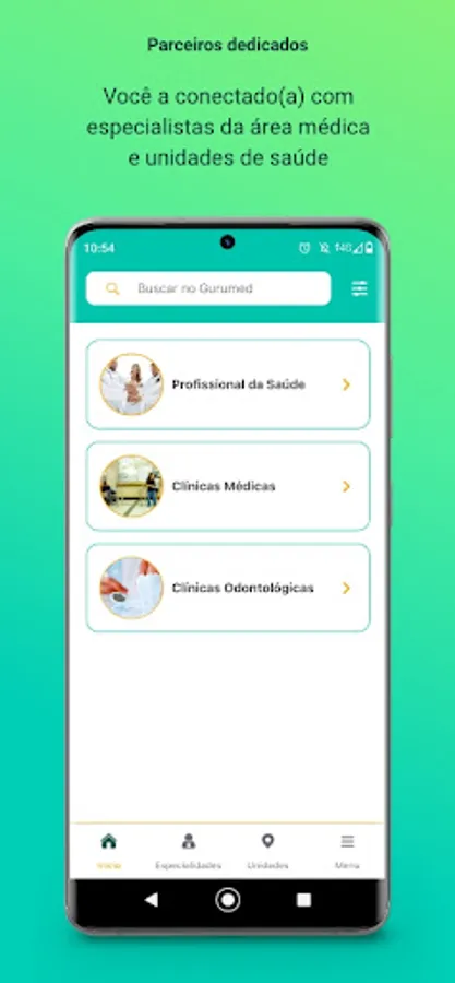 1.1 - SEARCH IN GURUMED - Here you can search by name of the professional, specialty, exams, clinics and even some words related to the specialty you are looking for (ex: headache, stroke, varicose veins, chest pain, heart attack, etc.) ;