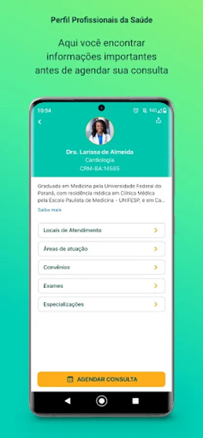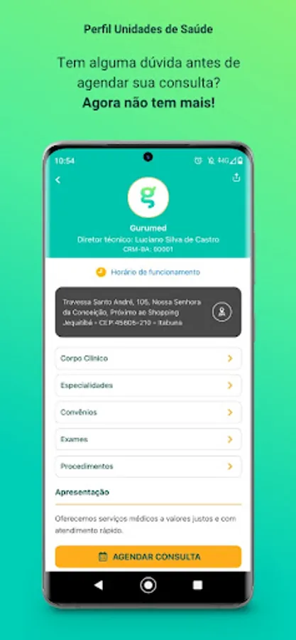 We designed this profile seeking to answer the main questions that precede a service. Among several, we highlight some: Who are the professionals they serve, service locations for each professional, specialties, exams, procedures, agreements, address, opening hours, payment methods and the professionals' schedule so that you can choose the best day available for your care.