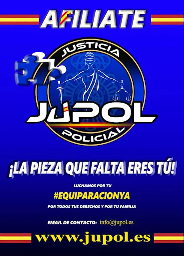 JUPOL is synonymous with progress, transparency, perseverance and sacrifice, having as main objective the salary equalization of all its agents with the rest of the Security Forces of Spain, because to the same job, the same salary.